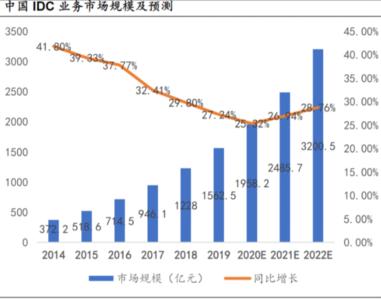 Over the past two years, the growth trend of China's IDC industry has reversed upward: the market scale will reach nearly 200 billion yuan in 2020, reversing the previous trend of continuous slowdown in growth. It is expected that the market scale will exceed 320 billion yuan in 2022. In the future, with the continuous increase of customer demand such as cloud computing, 5g and big data, the market scale of China's IDC industry will continue to maintain a rapid growth trend.