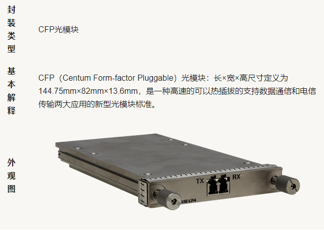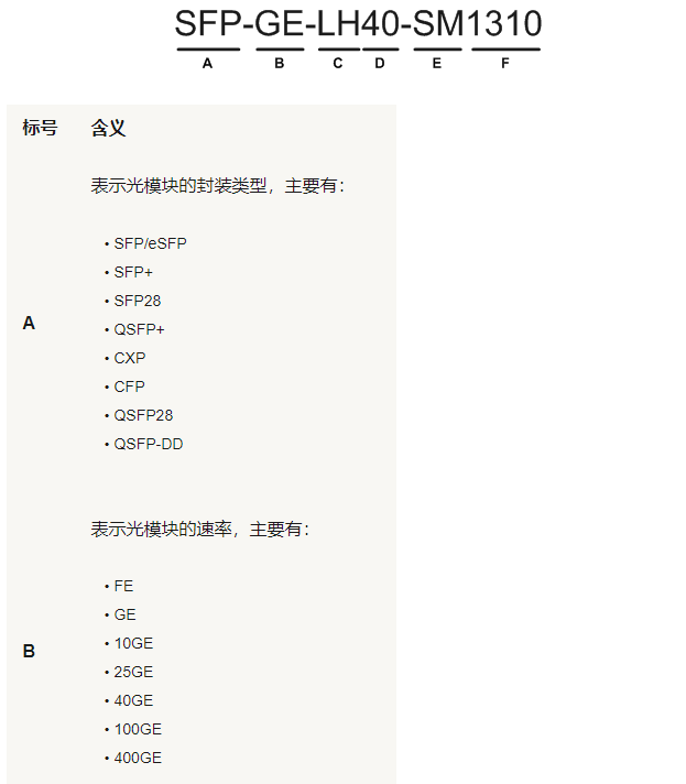 In order to meet the requirements of various transmission rates, optical modules with different rates are produced: 400ge optical module, 100ge optical module, 40ge optical module, 25ge optical module, 10GE optical module, Ge optical module, Fe optical module, etc.