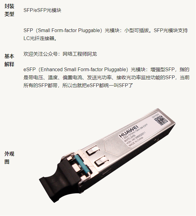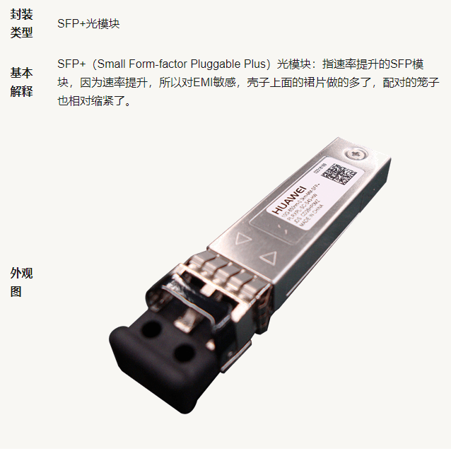 The higher the transmission rate, the more complex the structure, resulting in different packaging methods. The packaging types applicable to Huawei switches include qsfp-dd, qsfp28, qsfp +, sfp28, SFP / esfp, SFP +, CXP, CFP, etc.