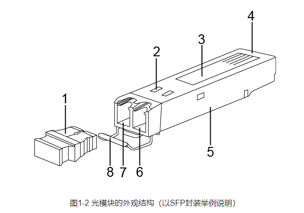 There are many kinds of optical modules and different appearance structures, but their basic composition structure includes the following parts, as shown in the appearance structure of figure optical module (illustrated by SFP package).