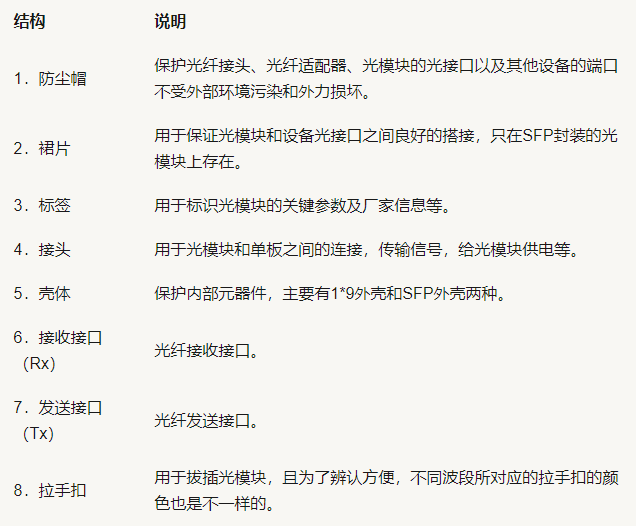 Table 1-1 description of each structure of optical module